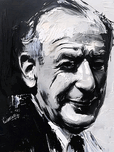 A monochrome digital portrait shows an elderly gentleman with a kind expression. Bold, impasto-like strokes give the portrait a dynamic and textured a...[+]