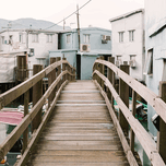 Wooden bridge with old floating home in Tai o fishing village HongKong