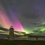 Glorious Skies with the Northern Lights on Cheticamp Island at Enragee Point Lighthouse. © Michel JS Soucy