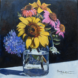 Summer Bouquet ( re paint of the Summer Gems) is a summer bouquet of Sunflowers and Echinacea in a vintage Gem brand canning jar.