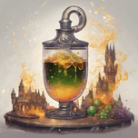 A mesmerizingly bubbling coktail evoking the essence of Harry Potter, every element brimming with magical whimsy: swirling colors reminiscent of Hogwa...[+]