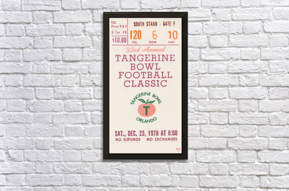 1978 Tangerine Bowl Ticket Stub Art Picture Frame Printing