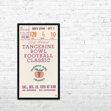 Get this artwork "1978 Tangerine Bowl Ticket Stub Art" in a framed print.