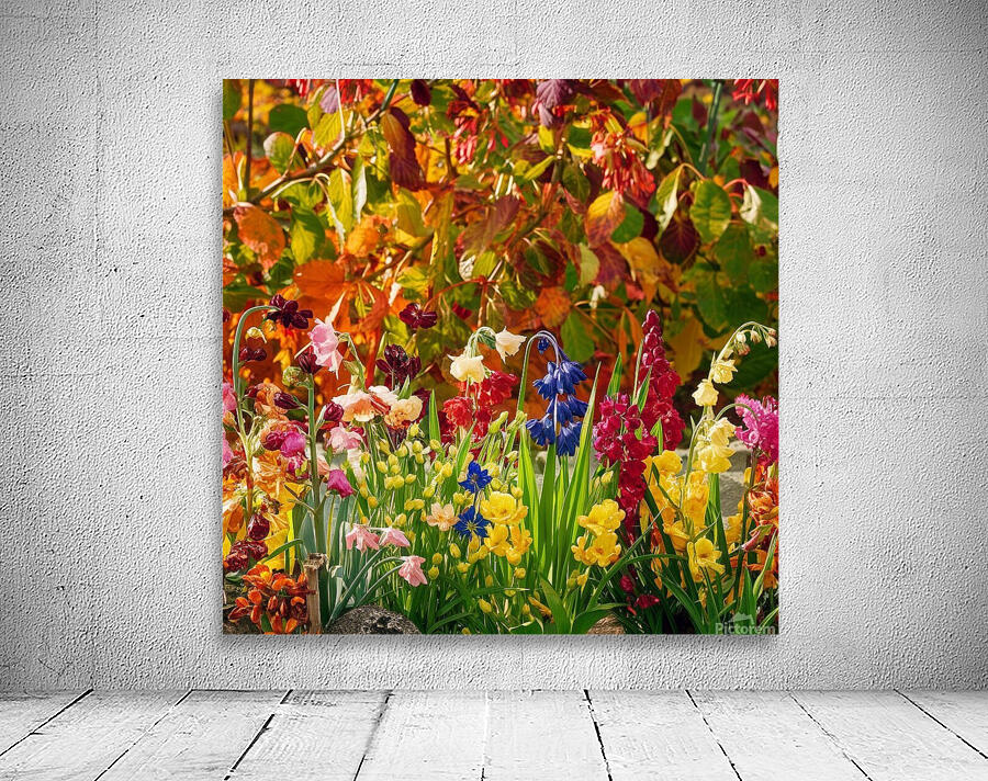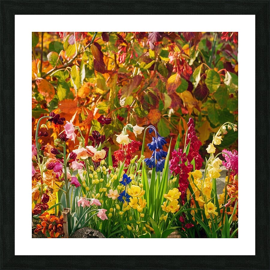 a picturesque scene of a colorful garden in a har Wall Decor Frame