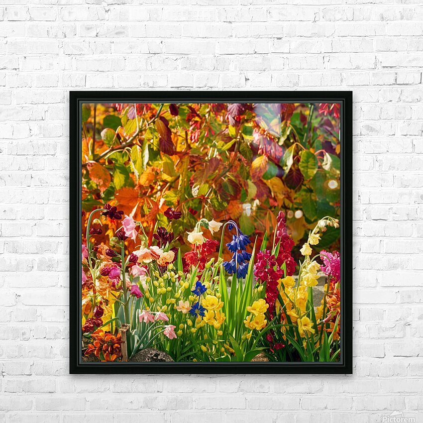 a picturesque scene of a colorful garden in a har HD Sublimation Metal print with Decorating Float Frame (BOX)