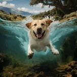 Un Labrador Retriever enthousiaste plonge dans une rivière claire et rafraîchissante. Ses pattes puissantes le propulsent dans l'air, tandis que...[+]