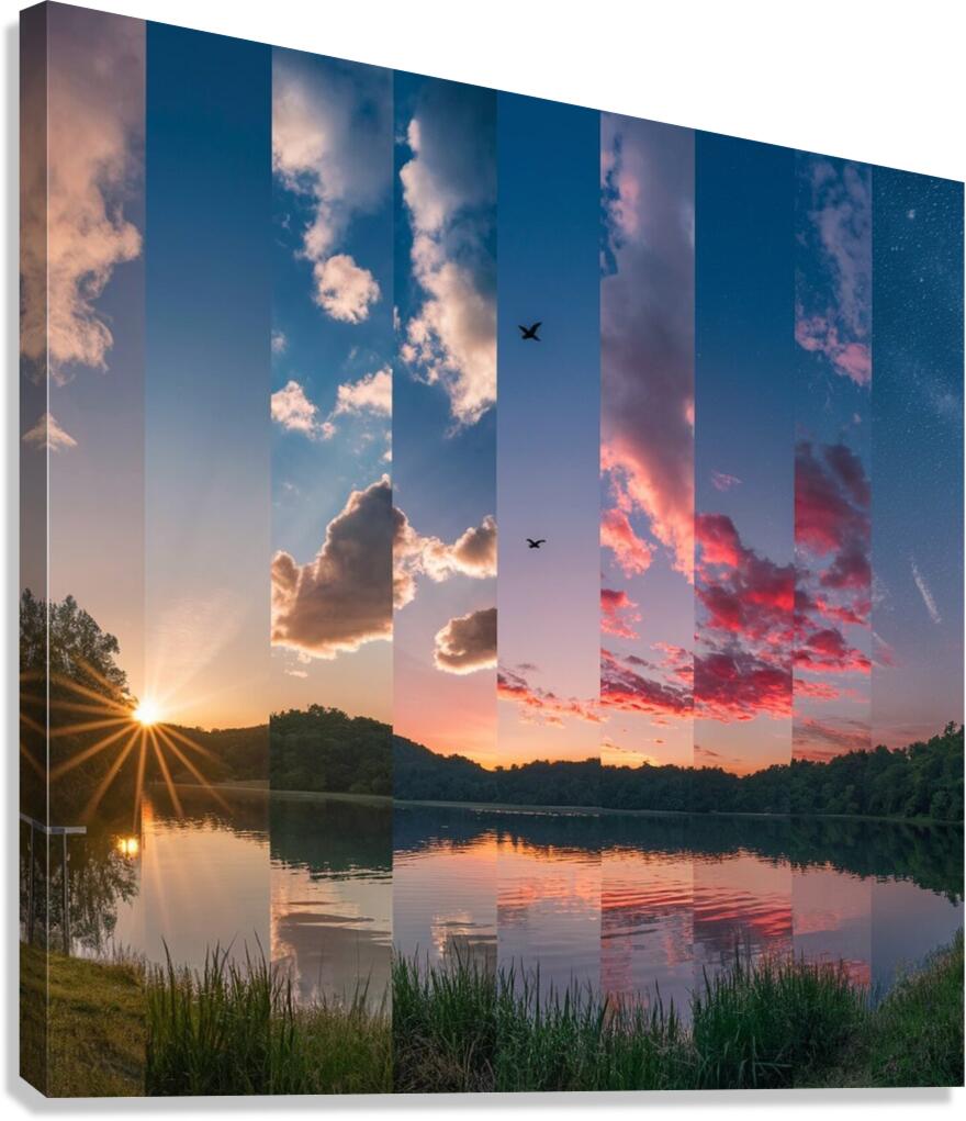 A panoramic photograph capturing the essence of a full day, from the early morning sunrise to the twinkling stars at