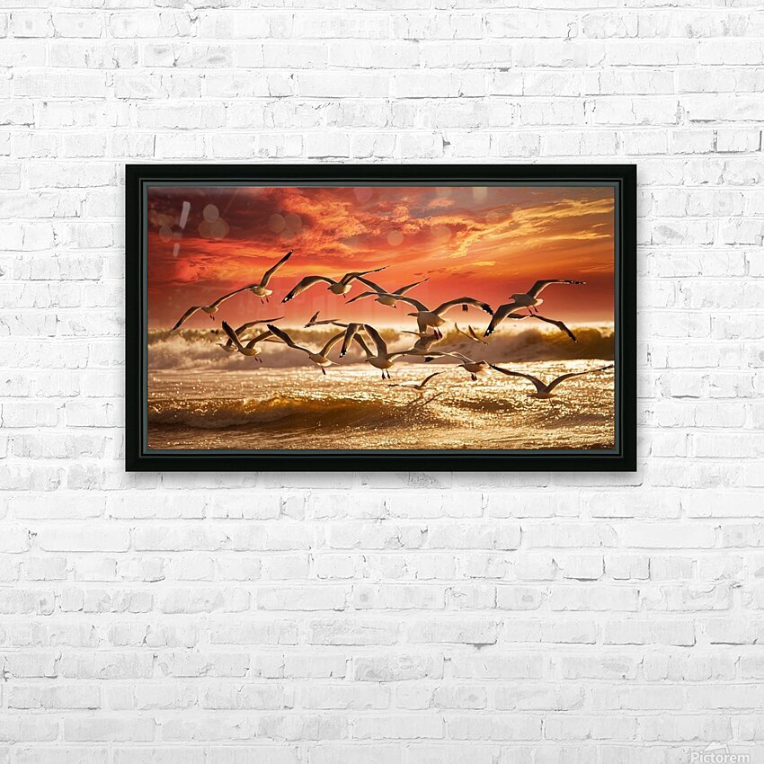 a stunning photograph of seagulls gracefully soar HD Sublimation Metal print with Decorating Float Frame (BOX)