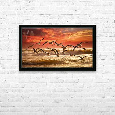 a stunning photograph of seagulls gracefully soar Wall Decor Frame