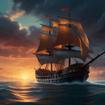A majestic winged horse-drawn ship, sailing swiftly across the open sea, [fantasy-inspired maritime adventure, fantastical realism], [dramatic lightin...[+]