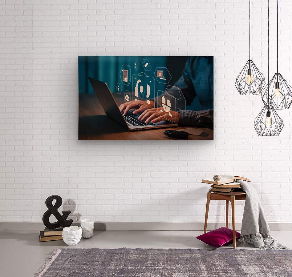 a person using a laptop at a table a stock photo Picture Frame Printing