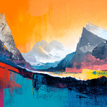 'Sunrise Spectrum' offers a vivid interpretation of mountainous landscapes at sunrise. This abstract painting uses a spectrum of bright, bold colors and dynamic textures to evoke the energizing beauty of nature's awakening. Ideal for modern decor, this piece brings a burst of life and color to any room, capturing the essence of a new day in a contemporary style.