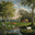 A picture of nature in the spring, in which there are birds, rabbits, water, cows, and goats