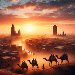 SUNRISE OVER TIMBUKTU AS A CAMEL CARAVAN PASSES THROUGH THE TOWN - VIEW 4