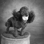 ABOUT THIS ARTWORK: PORTRAIT OF MINI POODLE RETRIEVING BALL 212996