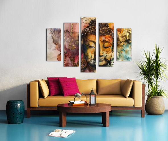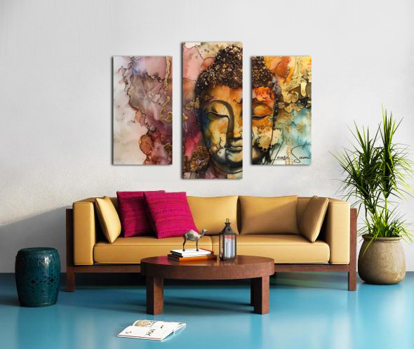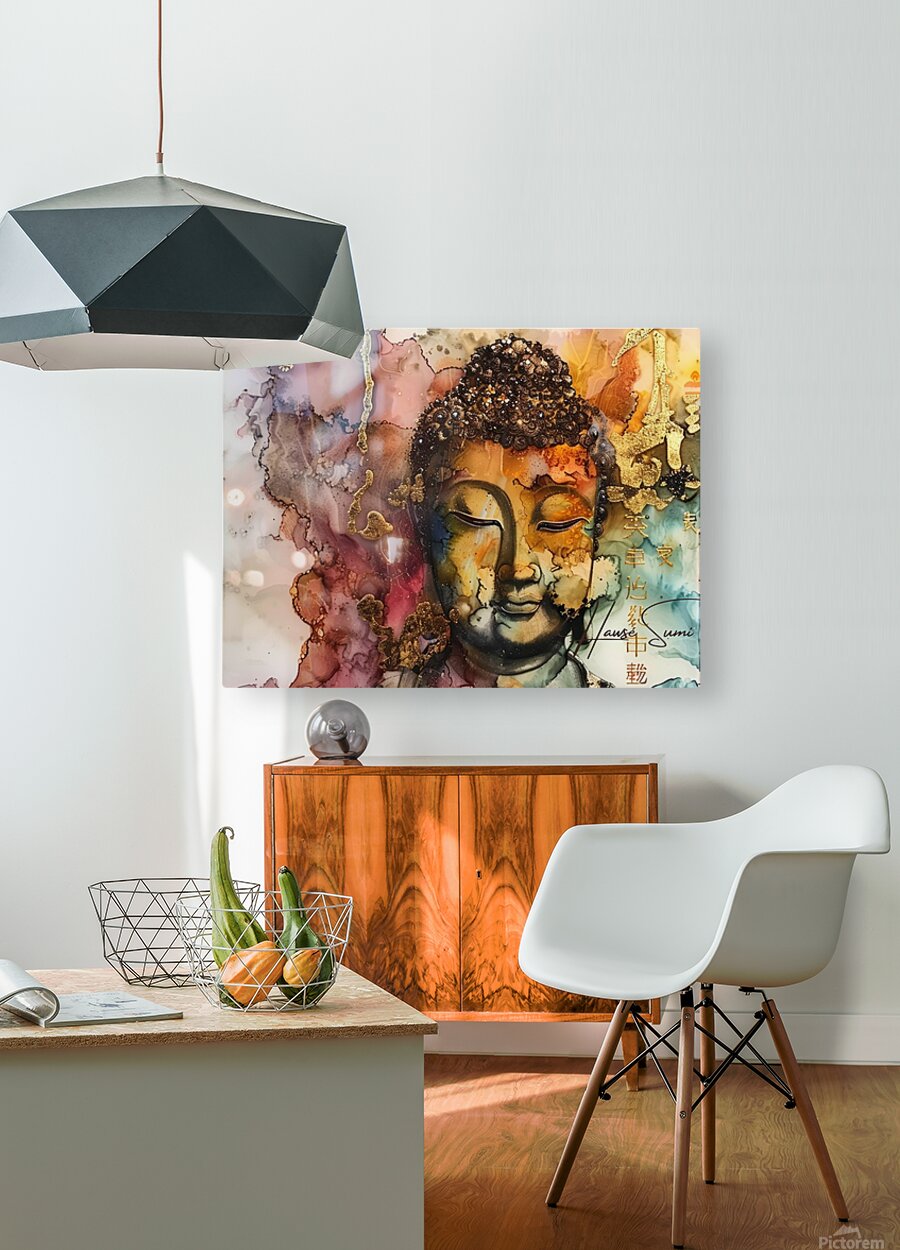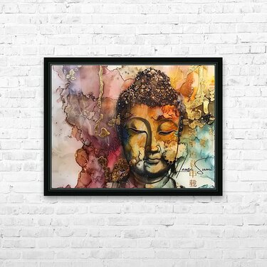This piece uses gold and earth tones to highlight the serene and contemplative features of a peaceful face. The artwork suggests a reflection on life&...[+]