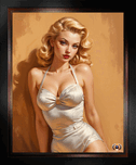 The Love Of White Silk Pin Up Girl Mesmerizing AI Concept Art Portrait by Xzendor7 Picture Frame Printing