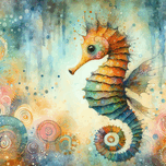 Get this artwork "291 Mixed media painting of a whimsical seahorse." in a framed print.