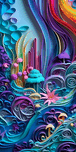 DIGITAL PAINTING OF A COLORFUL LANDSCAPE WITH FLOWERS AND TREES
