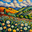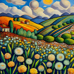 Van Gogh Flores y colinas atardecer watercolors, illustration, painting, graffiti