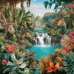 A BREATHTAKING AND VIBRANT ILLUSTRATION OF AN EXOTIC TROPICAL PARADISE