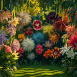 A spectacular display of vibrant, diverse and exotic flowers in full bloom, nestled within a lush green garden. The flowers range from delicate paste...[+]
