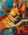 ABOUT THIS ARTWORK: A BEAUTIFUL CHAHUAHUA LYING ON OWNER IN THE SOF 7