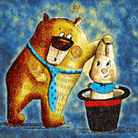 Get this artwork "rabbit bear dig impressionist" in a framed print.