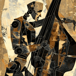 This illustration portrays a robotic jazz musician, crafted in the unique style of threadbare abstractions. The musician is depicted with a palette of...[+]