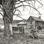 Meandering down Sam Snead Highway, we passed by this old charming log cabin framing a cow studded hilly background and huge maple tree. Emblematic of the historic mountain town hosting the famous Omni Homestead Resort, this scenic antique store is worth a stop for what it sells and it's beautiful gardens. Perfect in black and white on old style papers as a remembrance of your vacation here. Color print also available.