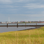 Panoramic summer photo of a bay in Cuxhaven Lower Saxony Germany.  Wood print