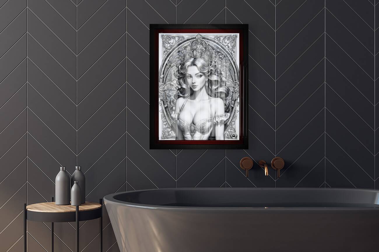 An Elegant Fantasy Girl Pin Up Illustration Beautiful AI Concept Art by Xzendor7 Wall Decor Frame
