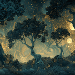 ABOUT THIS ARTWORK: A MYSTICAL FOREST BATHED IN THE SOFT GLOW OF MO D