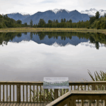NEW ZEALAND. LAKE MATHESON. IN THE BACKGROUND MOUNT TASMAN AND AORAKI MOUNT COOK
