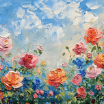 ABOUT THIS ARTWORK: A TRANQUIL GARDEN SCENE ADORNED WITH BLOOMING R 0