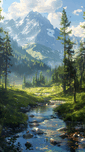 A TRANQUIL MOUNTAIN STREAM WINDS THROUGH THE FO B