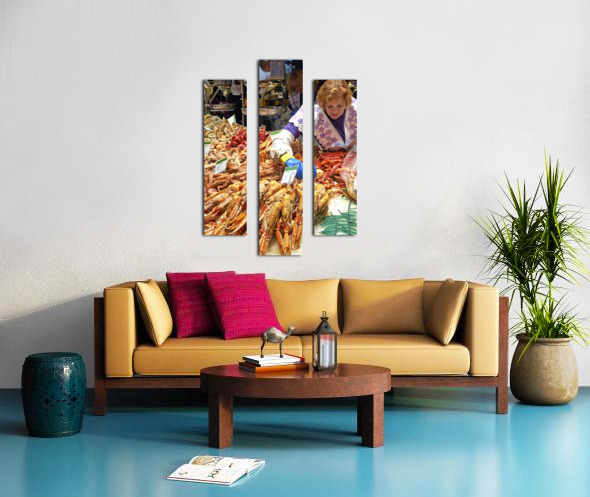 Barcelona. Catalonia. Spain. The Mercat de Sant Josep de la Boqueria. Tiger Prawns at fishmonger stall Canvas print