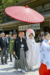 Japan. Tokyo. Traditional wedding ceremony at Meiji Jingu Shinto shrine