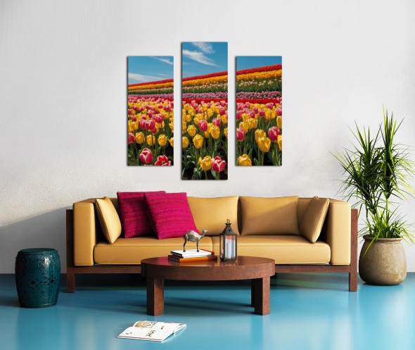 Default A field of tulips in different colors under a blue sky Canvas print