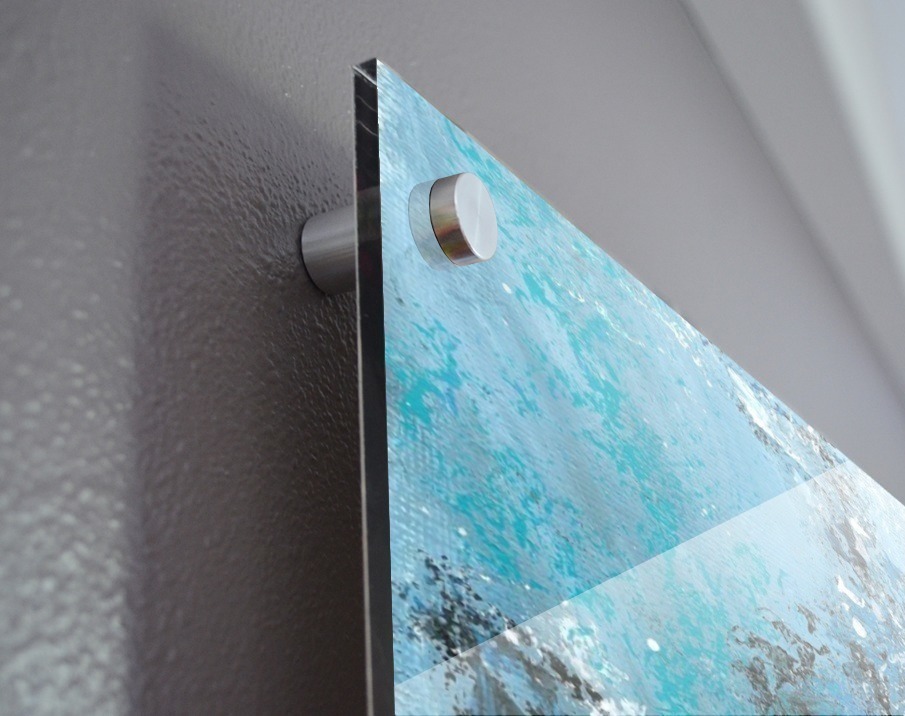 Printed to the edge - Ready to hang - provided with 4 premium polished aluminum stand off ( wall screws and mounting hardware provided )