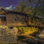 One of the few remaining humpback bridges in the United States, this charming bridge is a perfect spot in the summer to bring the kids for a picnic and frolic is Dunlap Creek, a tributary of the nearby. Jackson River. This 100' quaint bridge is 5' higher in the middle and was built in 1857. Located in Covington city park this old bridge is considered a top attraction in the Virginia, West Virginia, Alleghany Highlands area. Autumn is a favorite opportunity for a visit.