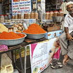 Get this artwork "India Rajasthan Jodhpur. Selling spices at Sardar Market Girdikot" in a framed print.