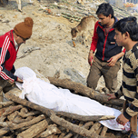 India. Varanasi Benares Uttar Pradesh. The sacred rite of hindu cremations by the river Ganges
