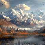 AN ALASKAS DREAMLIKE DENALI MOUNTAIN SCENE WITH A