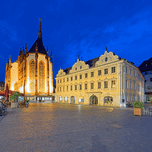 Germany Bavaria Romantic Road. Wurzburg. Marienkapelle Maria Chapel and the Falcon House