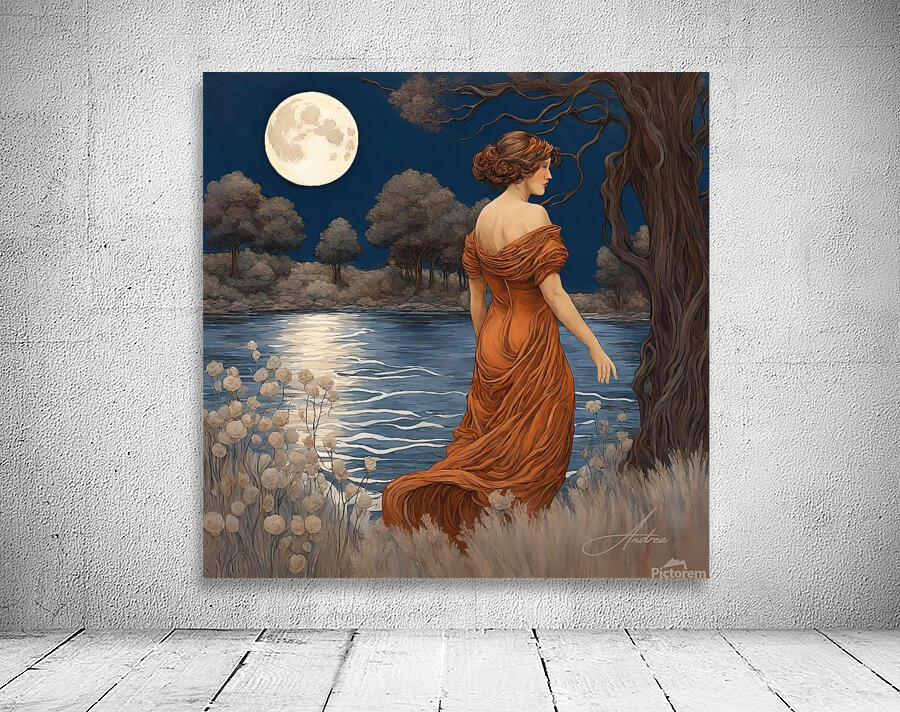 Lovingly created by Andrea Record, this Romantic painting will delight all Art Nouveau and auburn hair lovers! Looks great in all mediums. An AI assisted digital work.