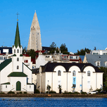 REYKJAVIK CITYSCAPE ON LAKE TJORNIN. ICELAND