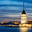 Istanbul Turkey. The Maidens tower on the Bosphorus and Blue Mosque Hagia Sophia at sunset
