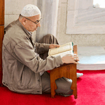 Istanbul Turkey. Muslim believer praying and reading Koran in the Fatih Mosque