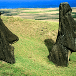MOAI STATUES AT EASTER ISLAND CHILE.